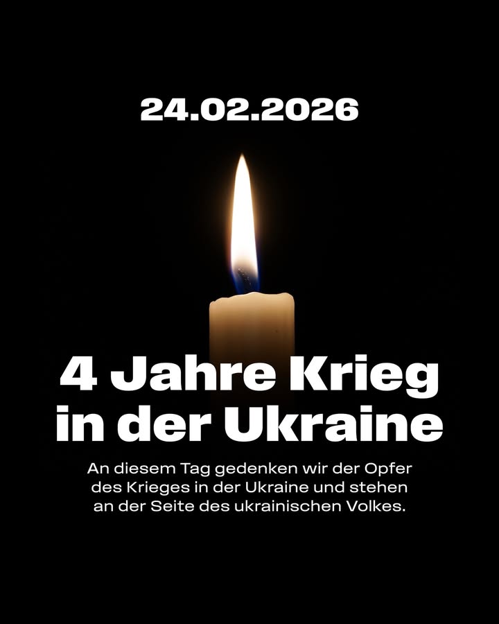 Heute jährt sich der Beginn des russischen Angriffskrieges gegen die Ukraine zum vierten Mal. Vier Jahre, die geprägt sind von unermesslichem Leid, Zerstörung und Verlust, aber auch von unglaublichem Mut und Zusammenhalt. An diesem Tag gedenken wir der Opfer des Krieges in der Ukraine und stehen weiterhin fest an der Seite des ukrainischen Volkes. 🇺🇦 #ukraine #standwithukraine