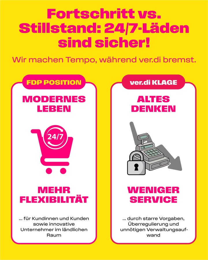 Während wir in Sachsen-Anhalt auf moderne Lösungen wie 24/7-SB-Läden setzen, um die Nahversorgung im ländlichen Raum zu sichern, zieht ver.di die Bremse. Eine Klage gegen digitale Innovation? Das ist pures Altes Denken auf dem Rücken der Bürger! Wir wollen: ✅ Flexibilität für Kunden & Gründer ✅ Modernes Leben statt starrer Ladenöffnungszeiten ✅ Echten Service statt bürokratischer Fesseln Wer die Digitalisierung stoppt, gefährdet die Lebensqualität in unseren Dörfern. Wir bleiben dran: Für ein Sachsen-Anhalt, das anpackt statt blockiert! #fdp #sachsenanhalt #freiheit #247läden
